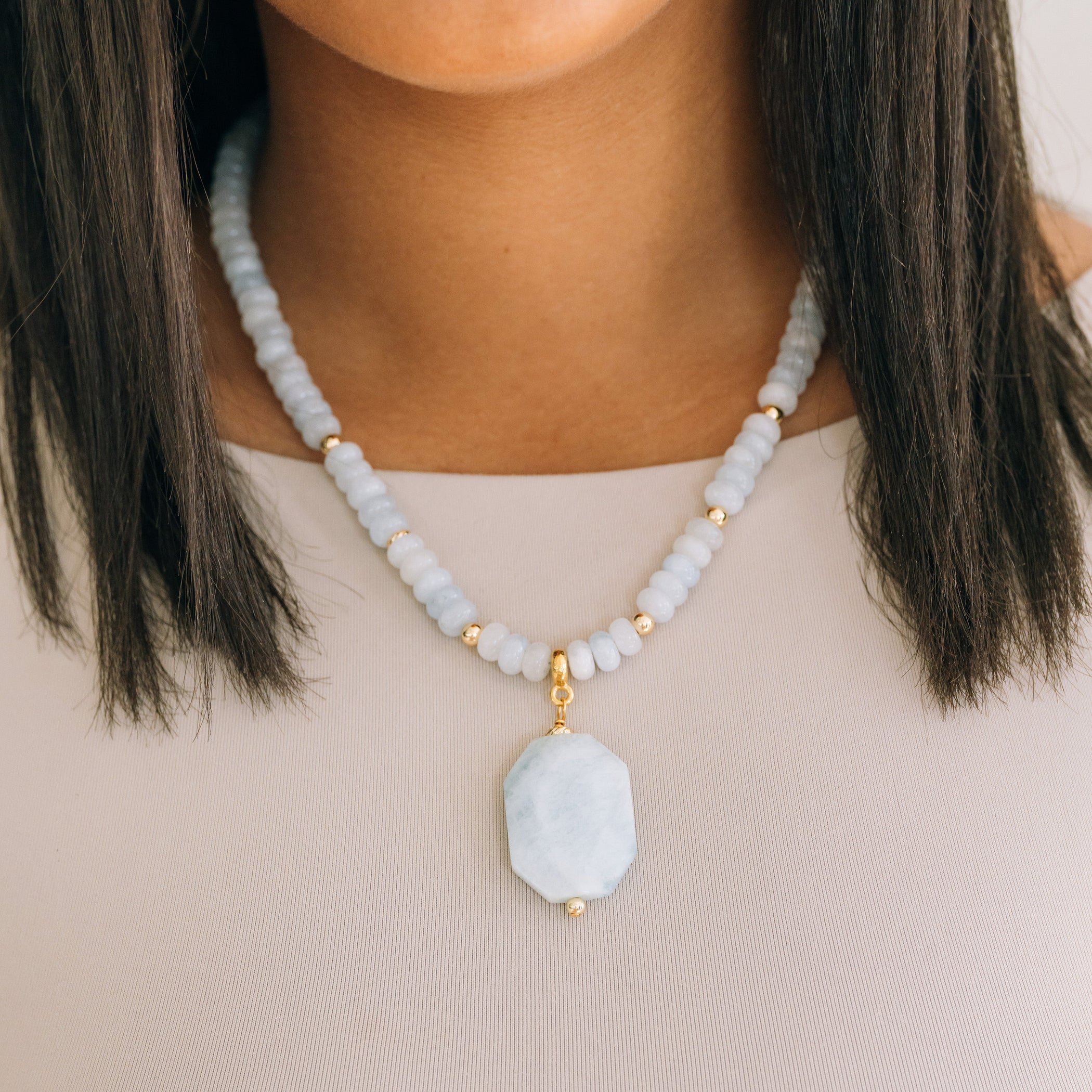 These blue stones set the tone for our collection! We found a dyed jade option that makes our look-for-less a possibility with all the beauty of our aquamarine accents in this collection!