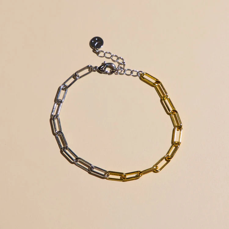 Our Paper Clip Chain Bracelet is the perfect dainty bracelet to customize. Now offered in Mixed Metal! Wear alone for a minimal and elegant look or add a custom touch with our clippable 14k gold and rhodium charms