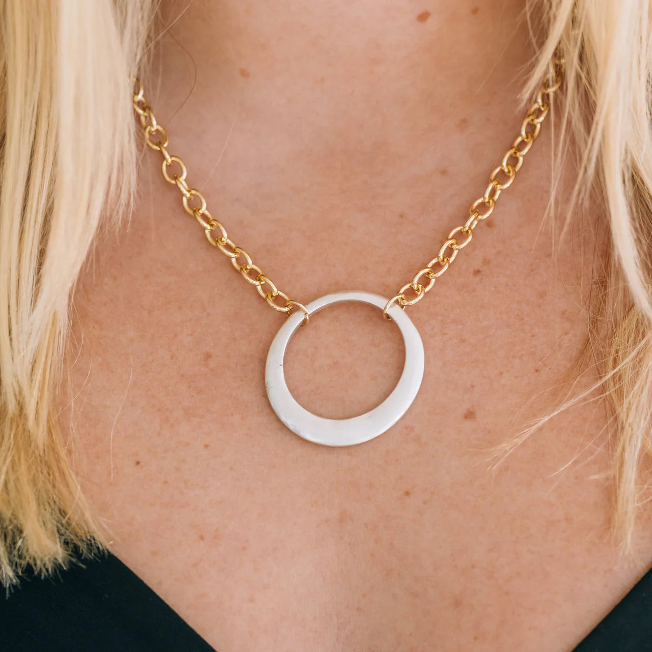 Mixed metal necklace with silver circle and gold chain detail