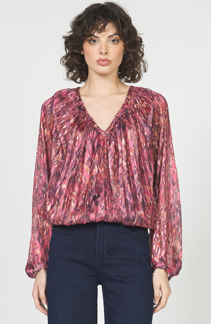 JACQ PRINT FABRIC W/LUREX BALOON SLEEVES 100% POLYESTER