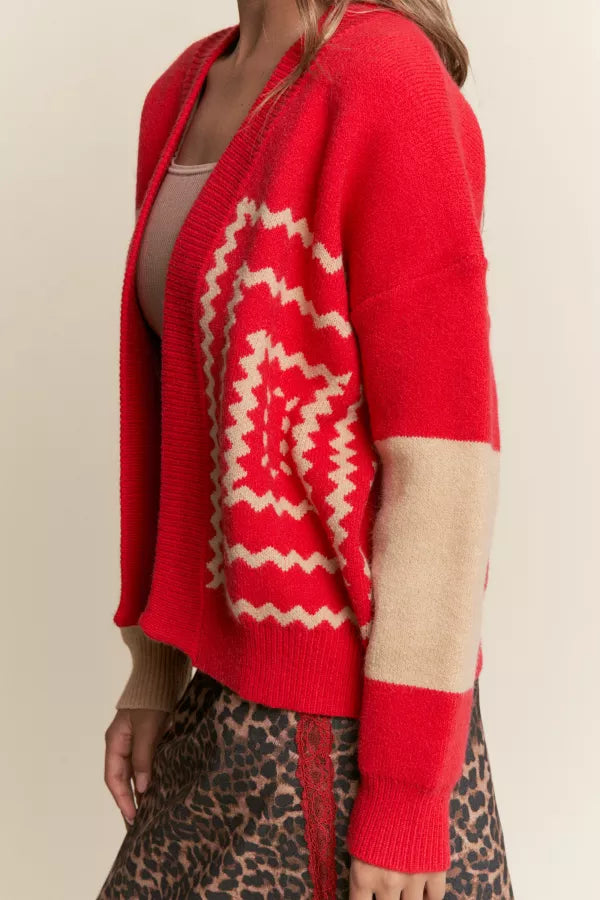 Women's multi pattern monochrome open cardigan. Fabric is super soft yet thick enough for warmth during the season.