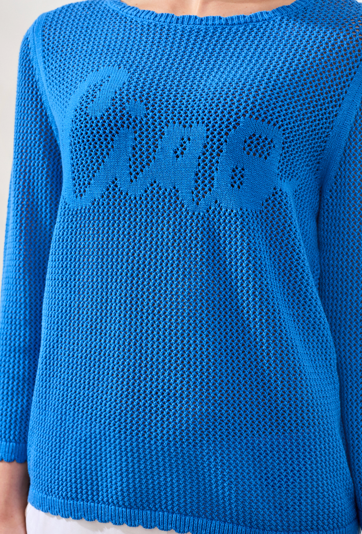3/4 SLEEVE CREW NECK SWEATER IN ROYAL